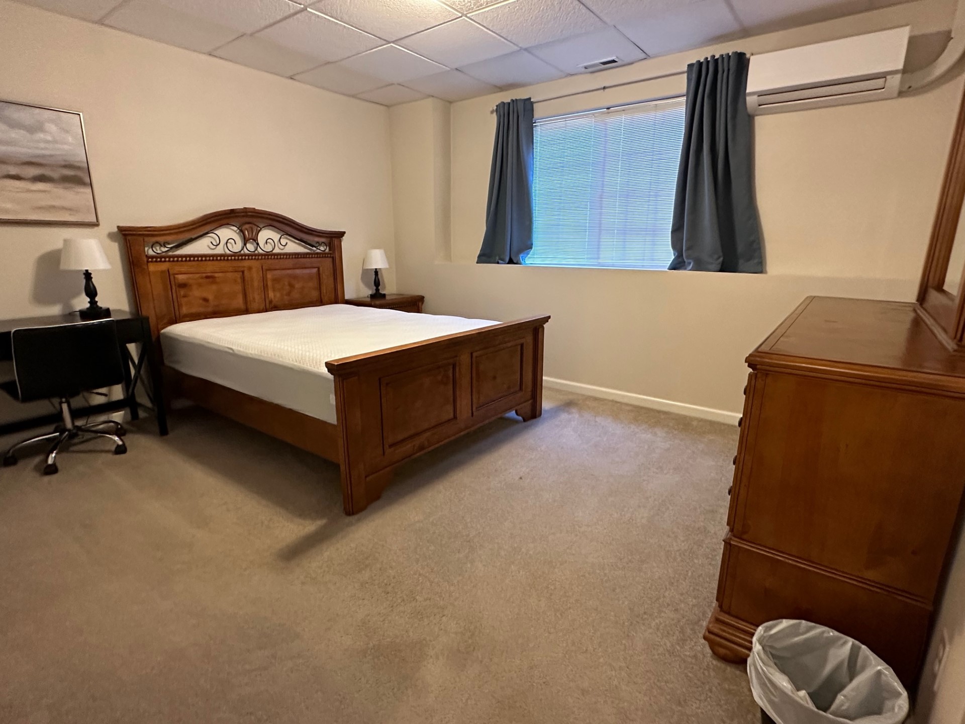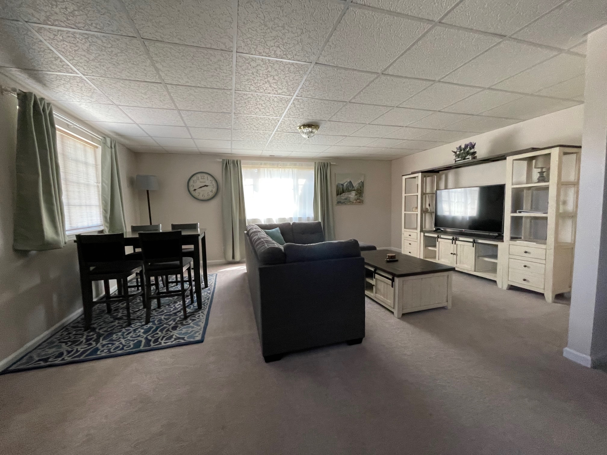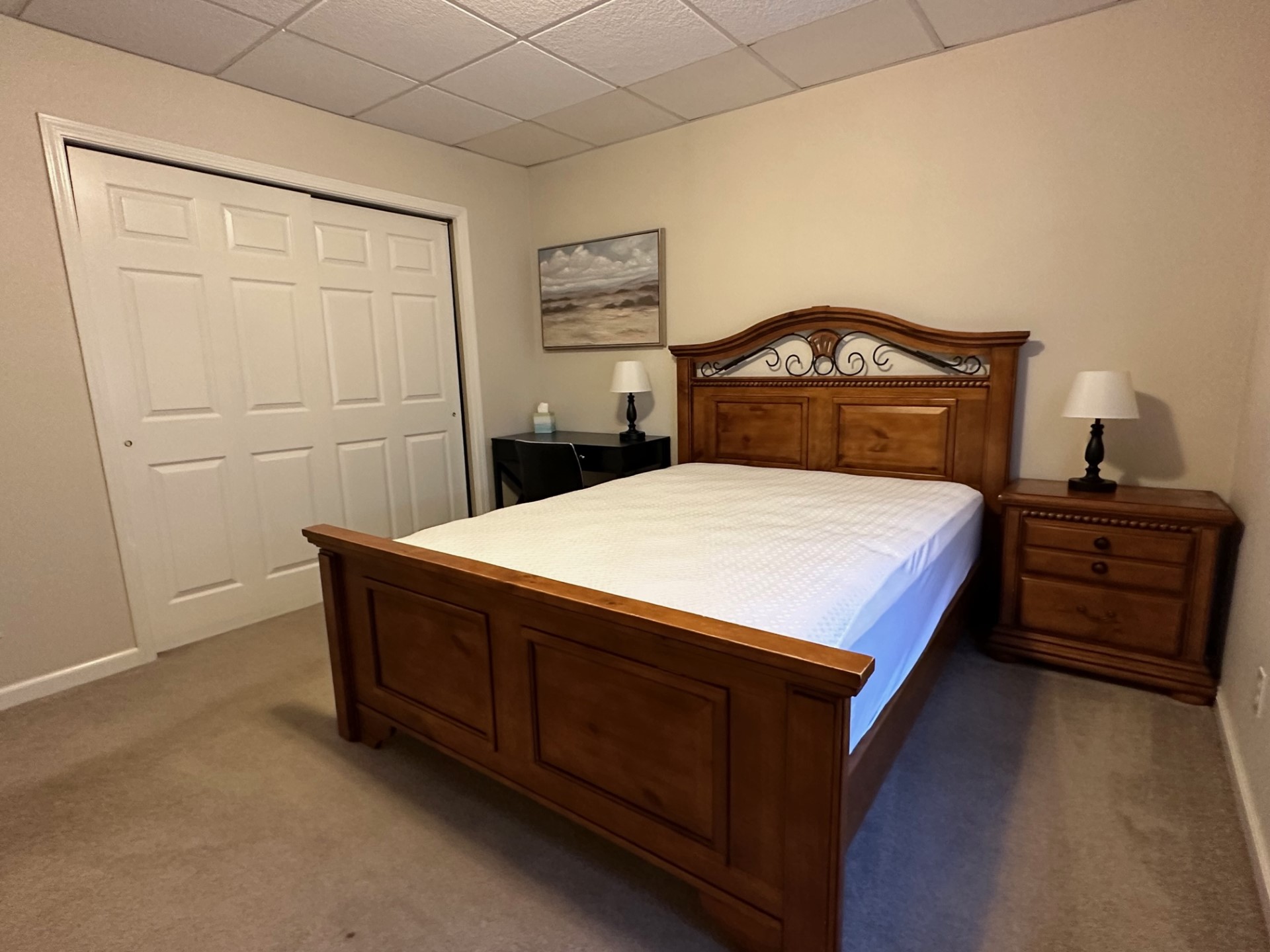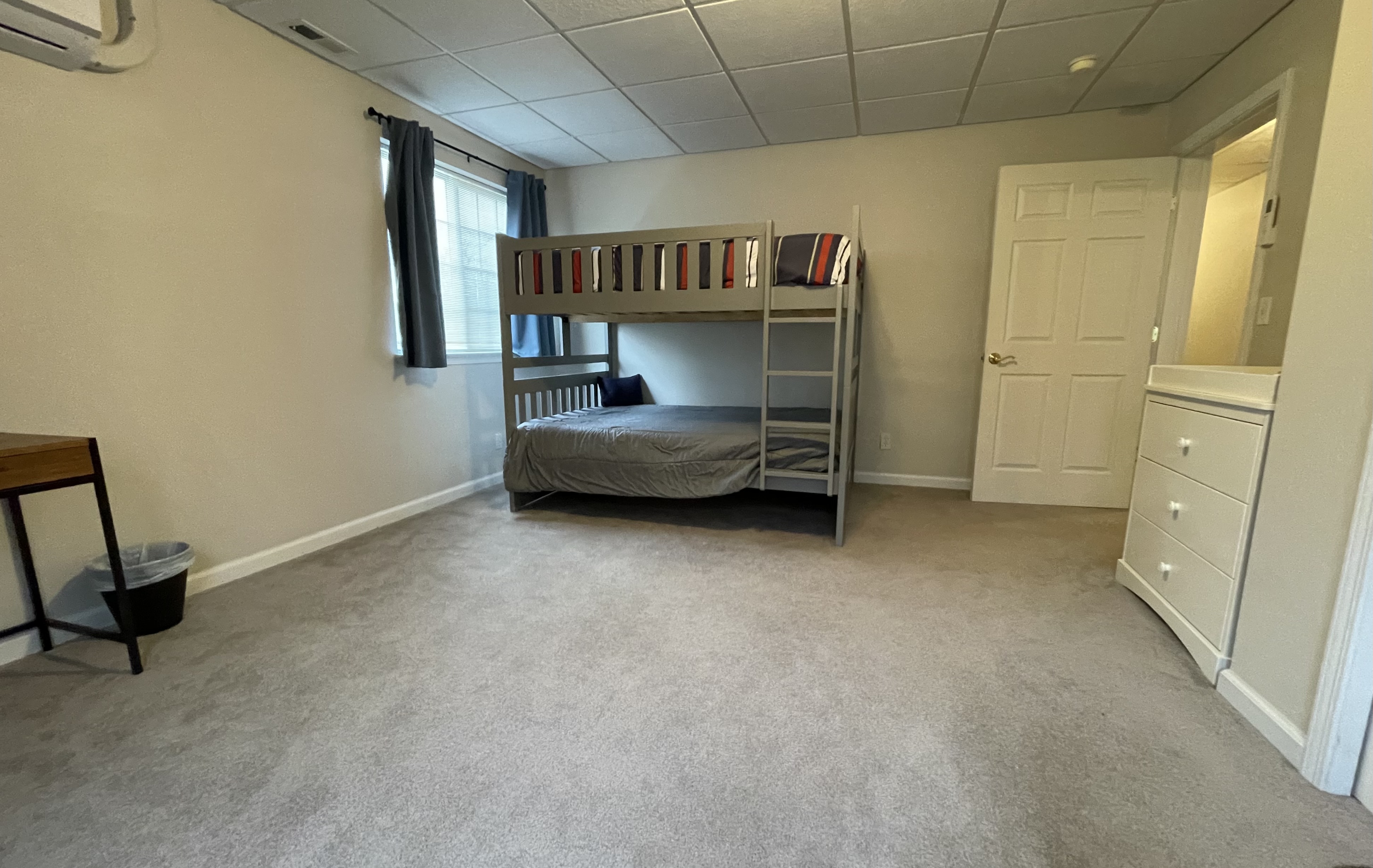 The family apartment is located on the lower level of the Valley View house. It has two large bedrooms. Bedroom 1 has a queen size bed while the 2nd bedroom caters to children with a full size bunk bed, a crib and changing table. It has a fully furnished kitchen with tons of cabinet space and granite countertops and large living room for family fun. The laundry space has a stacked washer and dryer with large cabinets for extra storage. The family apartment has a fenced patio and back yard that is exclusively for the apartment. The large lower yard outside of the fence is shared with the upstairs tenants. Parking for the Apartment is on the street of our cul-de-sac.
